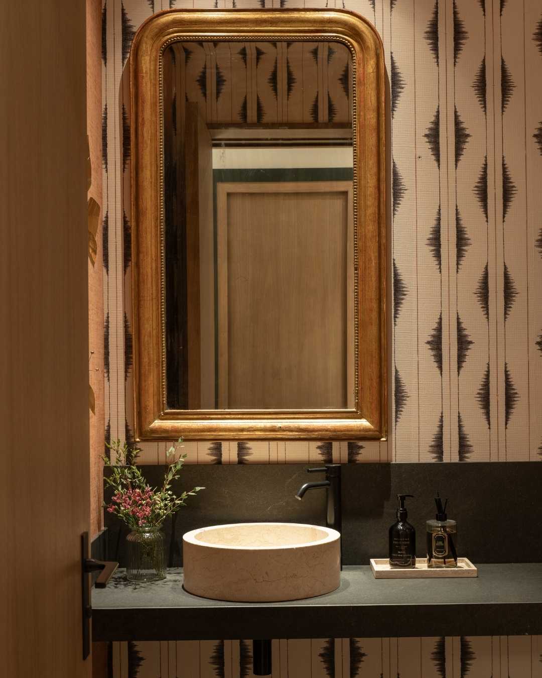 A eso se suma el valor del desgaste, que introduce matices y hace que el espacio resulte más natural. En este caso, el espejo, con sus pequeñas imperfecciones y su reflexión irregular, añade profundidad y suaviza el conjunto.