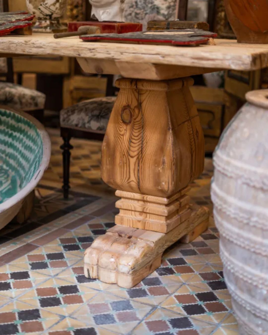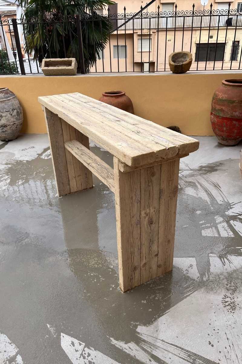 Cada tabla ha sido cuidadosamente limpiada, tratada y adaptada para convertirse en un mueble sobrio y con carácter. Puede funcionar como mesa para cocinas abiertas, como mostrador en tiendas o como pieza central en locales de restauración.