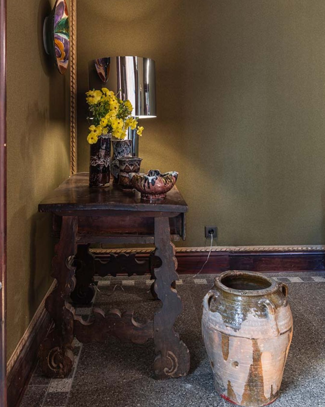 Una lámpara antigua que suaviza la luz, una pieza de cerámica colocada con intención o un par de candelabros con presencia tranquila pueden transformar el ambiente sin imponerse.